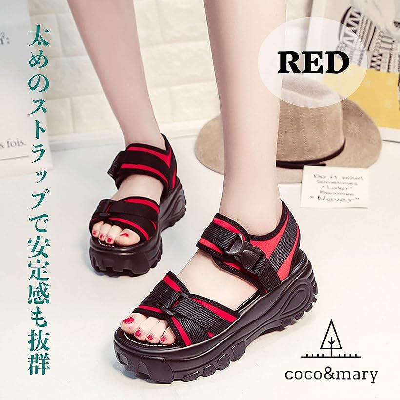 (留め具+面ファスナー付き)・トレンドの厚底スポーツサンダルで美脚効果にも期待。