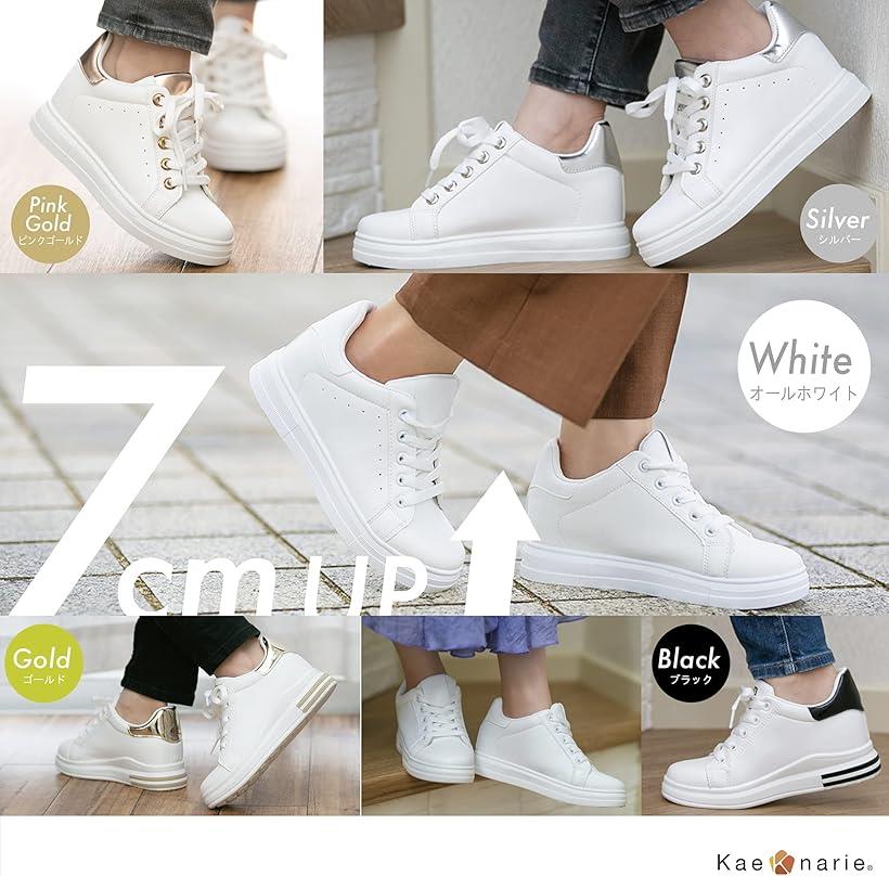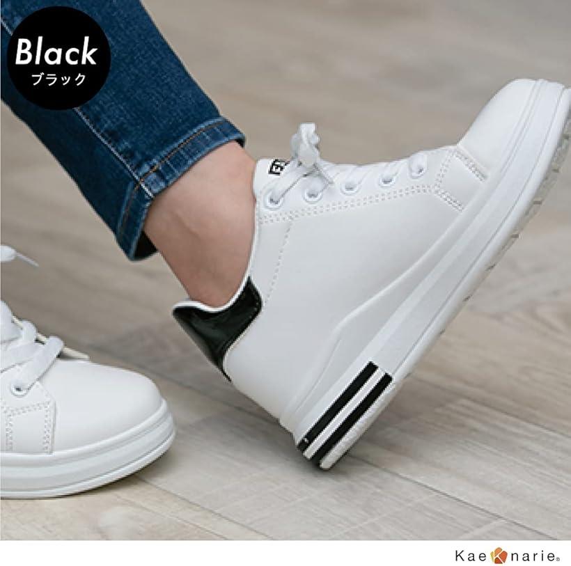 カエナリエ レディース 厚底 ローカット スニーカー 白 レースアップ インヒール ライン 入り 35 22.5 ホワイトxブラックライン 2019モデル(ホワイトxブラックライン 2019モデル, 22.5 cm 3E)